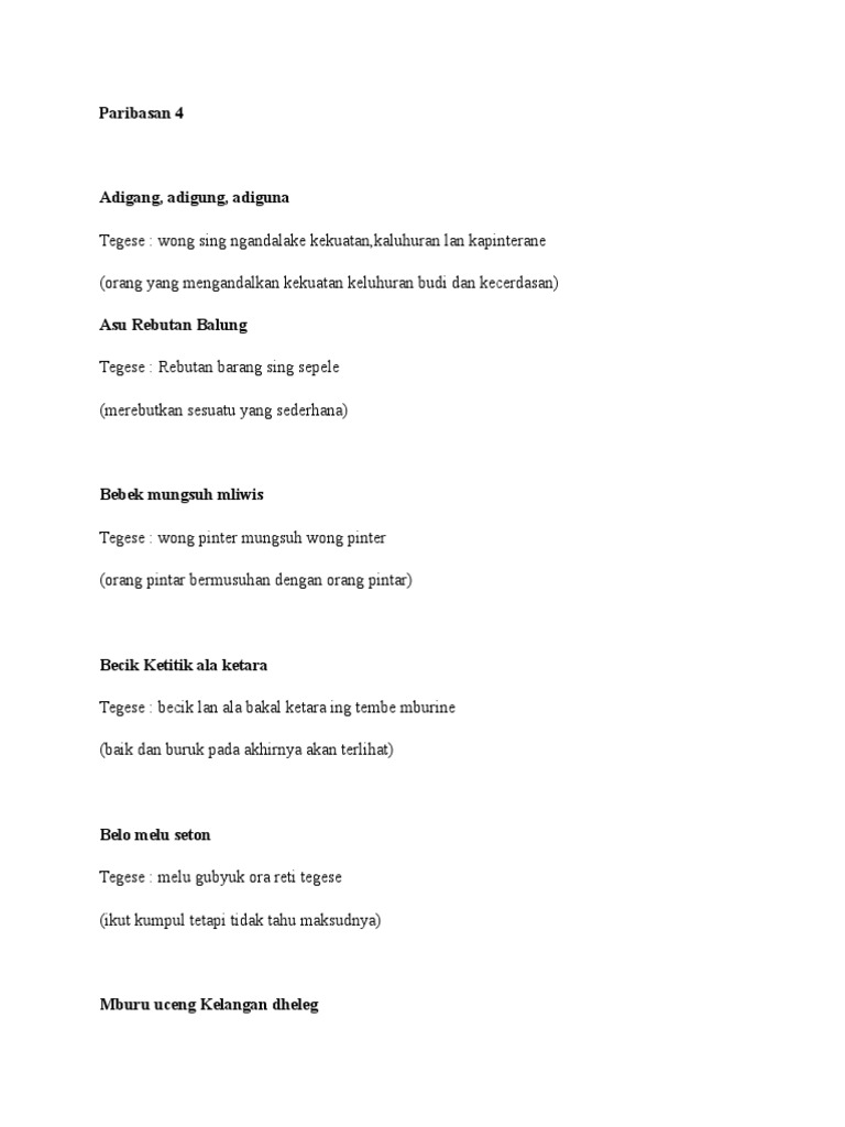 Tegesana Paribasan Iki 1 Adigang Adigung Adiguna2 Ana Catur Mungkur3 Ajining Raga Ing Busana4 Brainly Co Id