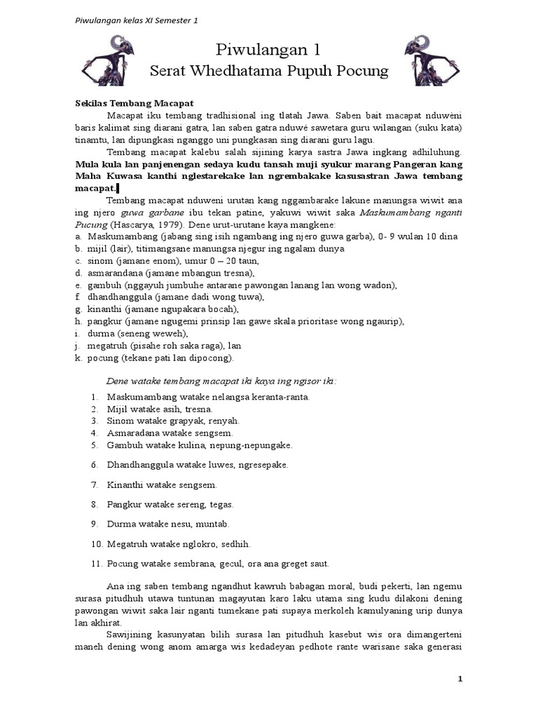 Modul 1 Tembang Pocung Kelas Xi Pdf