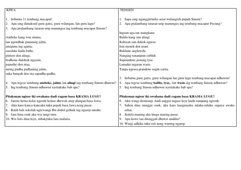 Soal Uh Kelas 7 Sems 2 Sinom Dan Ragam Basa Pdf