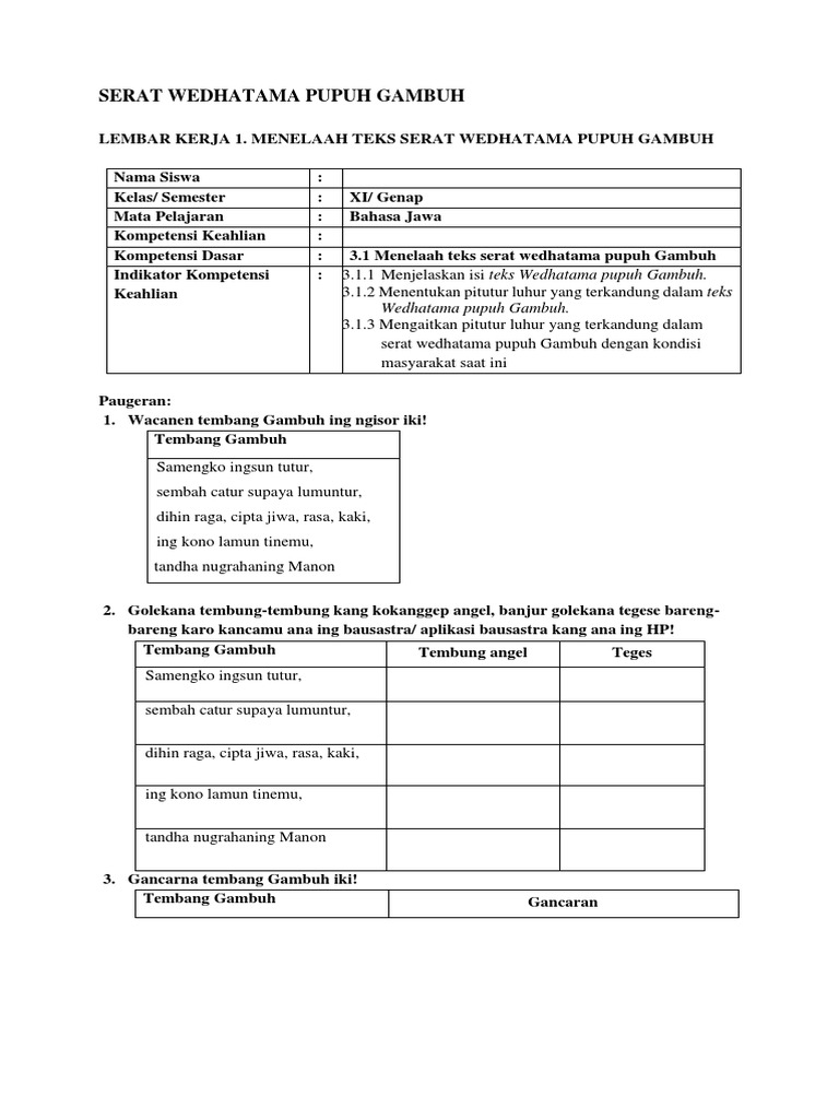 Maragopan will try to provide Unlimited Information. Milih-milih tebu oleh bolengc. Apa tegese serat wedhatama iku.