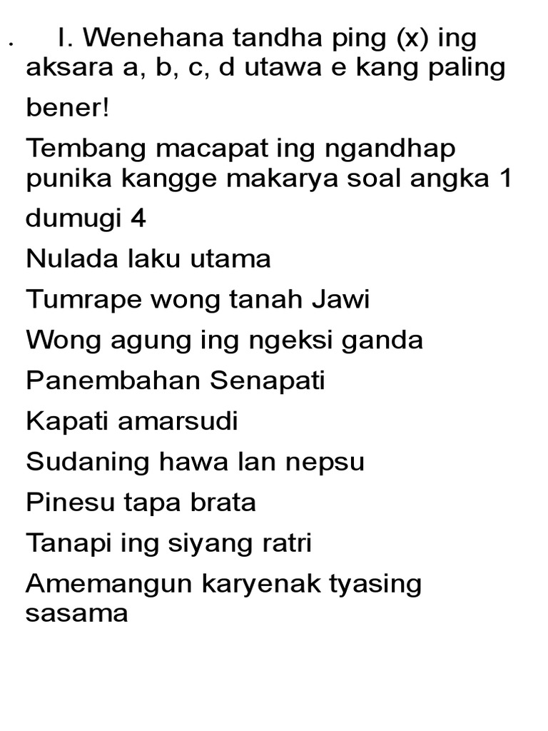 Saka tembung kanthi utawa tuntun kang ateges dituntun supaya bisa mlaku ngambah panguripan ing alam ndonya. Mati ucapan yang benar-benar menyegarkan hati dan. Play this game to review Education.