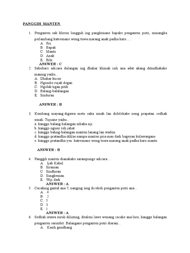 Kumpulan Soal Upacara Adat Bahasa Jawa Beserta Jawabannya Pdf