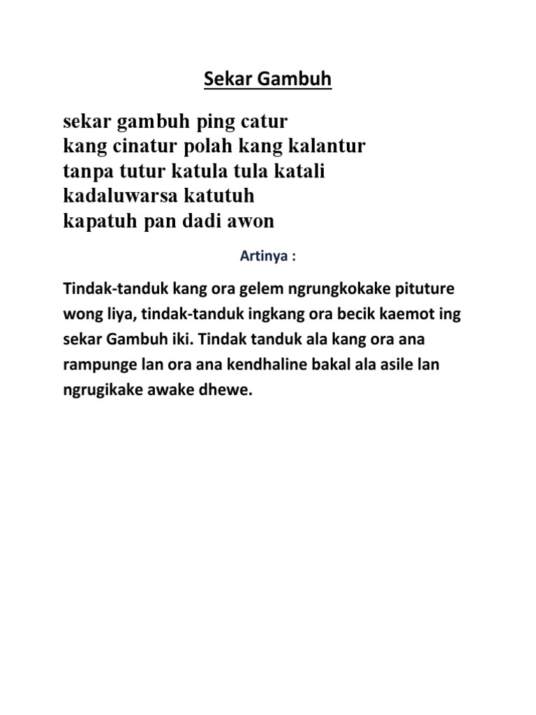 Dinalestaripacitan last month 0 Replies. Apa yang dicitakan haruslah terlaksana tak pandang bulu apa akibatnya. Tembunge liya lantip panggraitane gampang tanggap ing semu tanggap ing swasana.