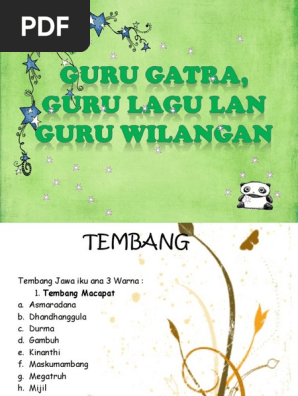 Geguritan asalé saka tembung gurit kang ateges kidung utawa tulisan kang awujud tatahan. Guru Gatra Tegese Guru Wilangan Tegese Guru Lagu Tegese Jawab Dengan Benar Ya Brainly Co Id. Guru Gatra Yaiku cacahing utawi jumlahing gatra ing tembang macapat yaitu jumlah baris dalam lagu macapat.