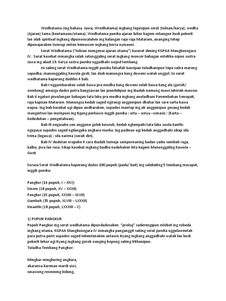 Untuk lebih lengkapnya silakan cermati artikel di bawah ini. Sangsayarda deniro cacariwis Ngandhar-andhar angendhukur Kandhane nora kaprah saya elok alangka longkanganipun Si wasis waskitha ngalah Ngalingi marang si pingging. Si pengung nora nglegewa sangsayarda denira cacariwis ngandhar-andhar angendukur kandhane nora kaprah saya elok alangka longkangipun si wasis waskitha ngalah ngalingi marang sipingging.