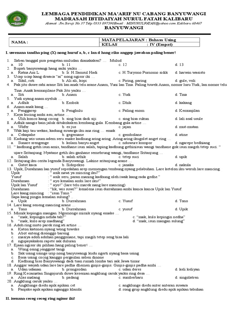 Wor suh watak wantu. Uba rampe antawisipun apem ketan saha kolak. Kang diaturake marang dhêdhuwuran ing nalikane duwe gawe lsp.